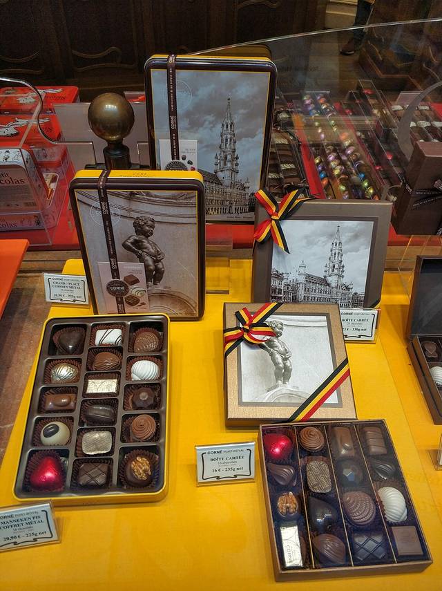 穿过布鲁塞尔大广场,很快找到了市中心最热闹也是最古老的高档商业街,圣于贝尔长廊!橱窗里各式各样的Corne Por Royal巧克力,看着是不是就很有食欲啊!