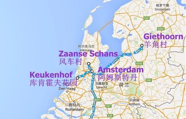 我们买了中号的荷兰通票,上面用红圈圈出来的地方,就是此次我的行程单里要去的地方。