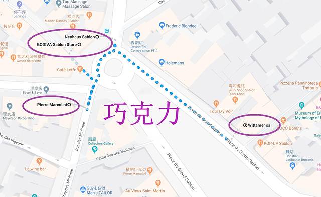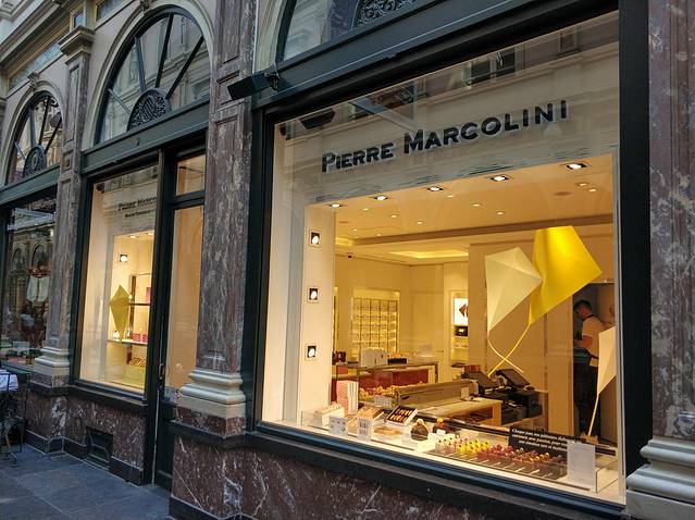 1995年世界烘焙师大赛冠军比利时人Pierre Marcolini,创立以自己的名字命名的巧克力品牌。在短短的十几年里,Pierre Marcolini已经成为巧克力品牌中的路易威登。总店位于大萨伯隆广场 Grand Sablon,这里是圣于贝尔长廊的分店。