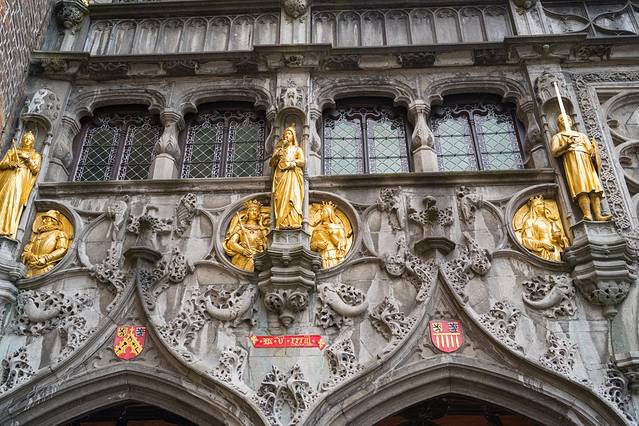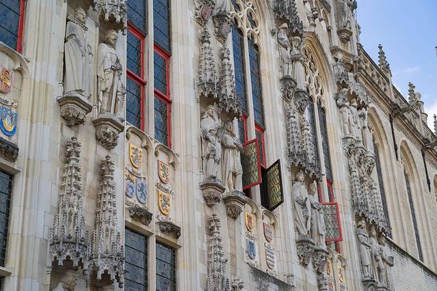 沿着钟楼旁的巷子一直往北走,来到比利时最古老的市政厅,距今已有640年的历史!哥特式的风格装饰精美别致,显示着布鲁日昔日的辉煌......