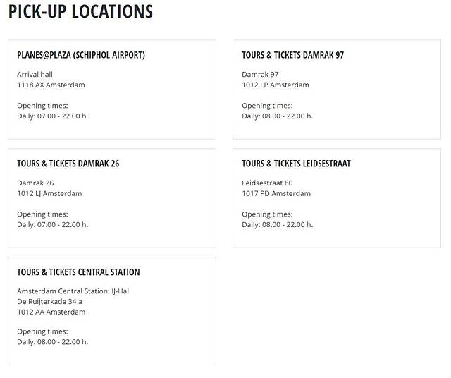 不过荷兰通票唯一一点让人点纠结的是,官网预定好之后,只能到阿姆斯特丹的这5个地方取票,不能邮寄!也就是说,如果你的行程里第二天就需要用到荷兰通票的,一定要提前去取好!