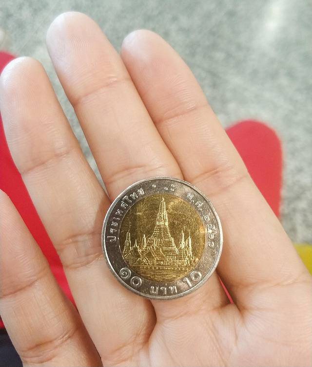 可翻过来,傻眼了!这是我在机场用退税的零件购买礼品时,营业员发现的,她说:“no,no,这个硬币我不认识哦!”问了一圈,才知道,这个是泰币!2欧元就这么缩水成了10泰铢!退税的工作人员,也有不靠谱的时候啊大怒