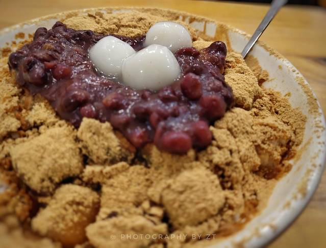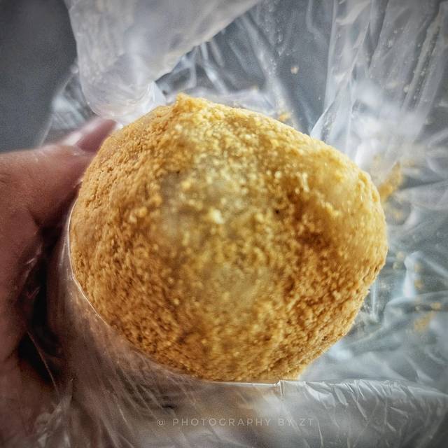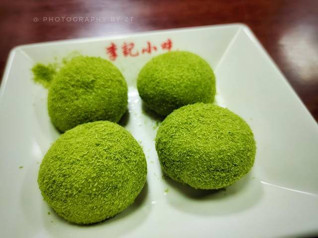麻糍——里面的碎末馅脆爽,夹杂着花生碎粒,外面包裹的糯米皮很软糯,一软一硬,两种不同的滋味在舌尖上肆意“切换”。