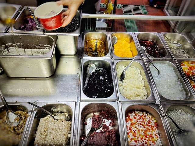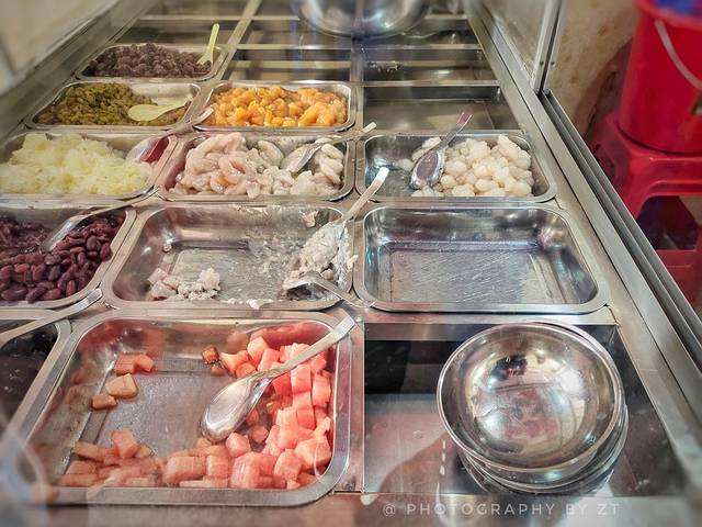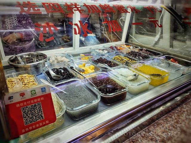 “牵一发而动全身”,由百年传承的秉正堂(天后宫总店)带来的“连锁效应”,如今使得“秉正堂”这个品牌开遍了泉州各城区,这家南俊分店就位于鲤城大酒店附近的南俊路上。相比起总店,这家店的地理位置相对于食客来说更好找,店内的招牌依旧是“四果汤”。石花膏是自带的,只需再点另外四种配料即可。光是看着橱窗里琳琅满目的配料,便难以抉择。芋圆、水果、椰果、珍珠、丸子、银耳、凉粉,每一种都想尝试,四种配料搭配的限制,估计得让踟躇者纠结好一会儿。