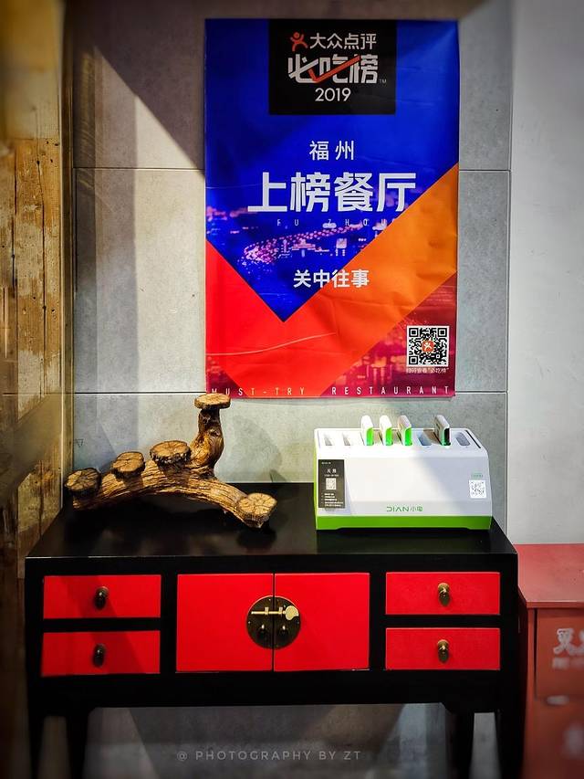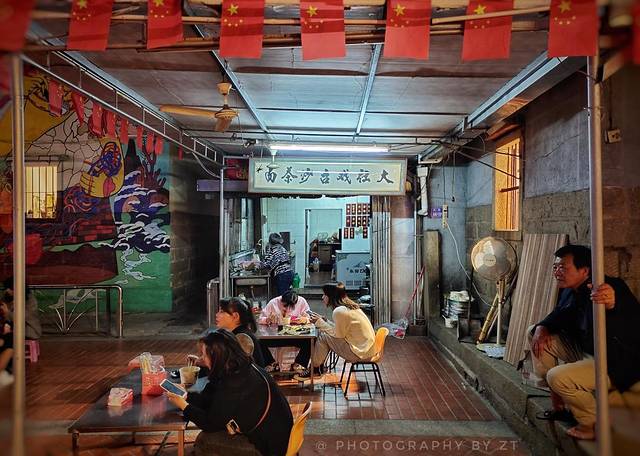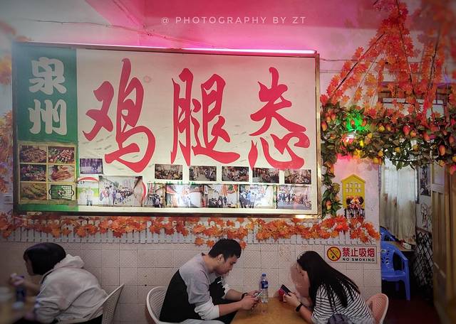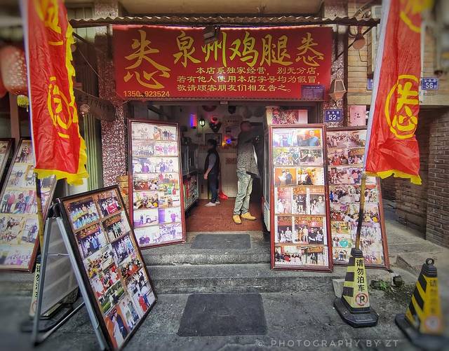 首先说说环境:步入这家店所在的小巷瞬间有种回到古代的感觉,满满的“古代风”,鲜红的旌旗随风飘摇,印着“鸡腿怣(you)”三个醒目的大字。店门口摆放着老板到世界各地“美食巡演”的照片,光是气场上,未进门,就已经被这家烧烤店给震慑住了。