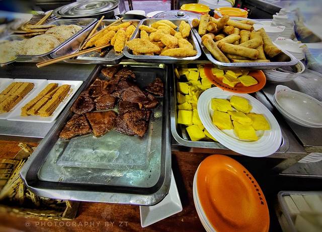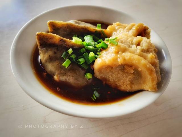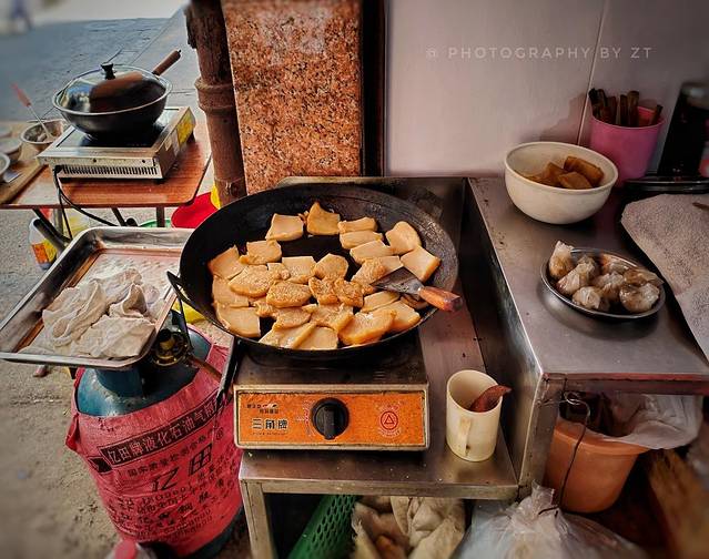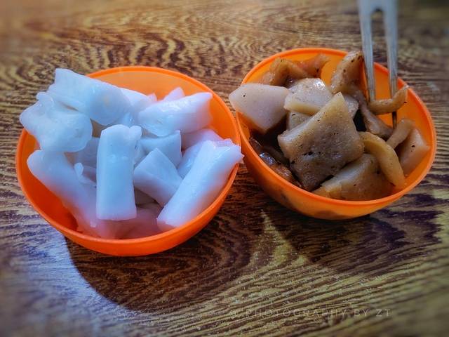 关键是酱料,咸甜的酱汁浸润着雪白如玉的叉叉粿,尝上一口,的确美滋滋。煎粿也不错,煎得恰到好处,香而不焦,爽而不腻。
