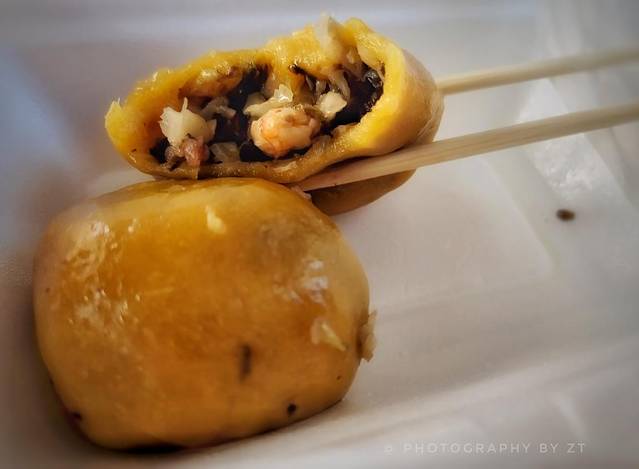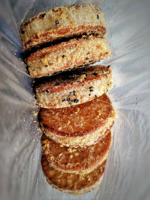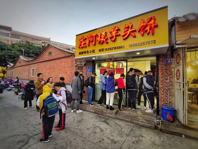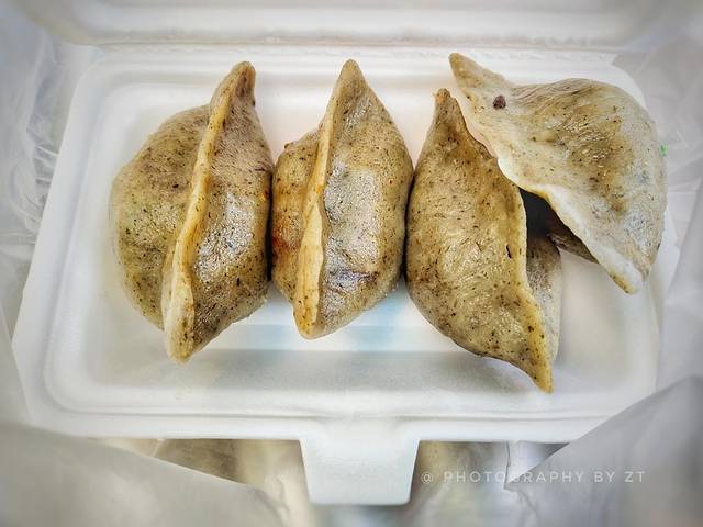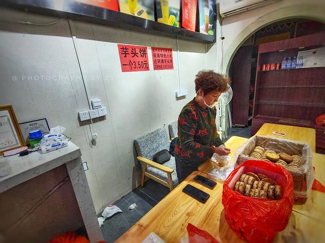 想吃庄阿姨的芋头饼,首先要突破“排队耗时长”这一心理关。售卖的芋头饼分两种:甜芋饼和咸芋饼,白芝麻外皮的是甜的,黑芝麻外皮的是咸的。最好一买就趁热吃了,口感最佳。很多人是打包带走的,我也不例外。要了三甜三咸。入口外皮香脆,内馅用料足,实在。不需要我过多称赞,来了,买了,你就知道了。