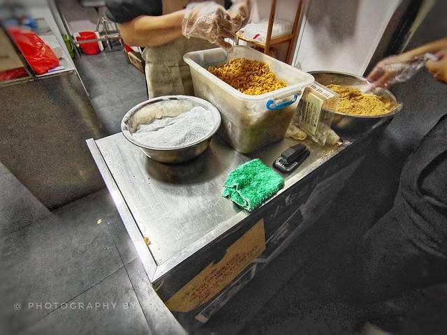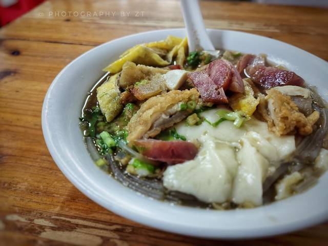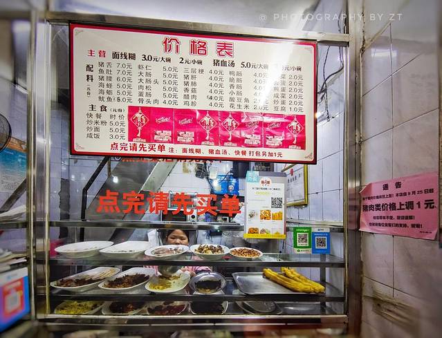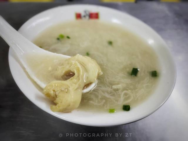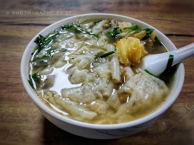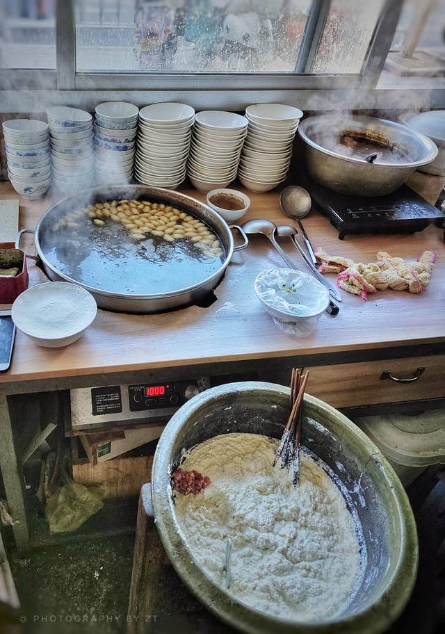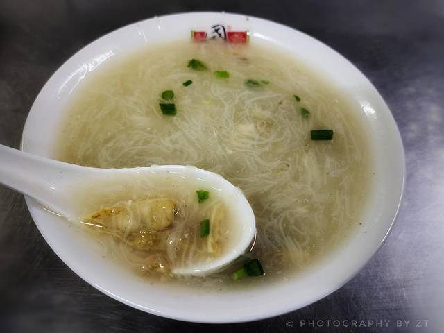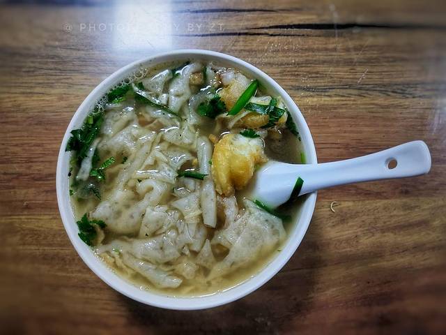 快接近晚上打烊的点来的,面线糊的配料没剩多少了。点了一碗面线糊加脆肠,面线糊的细面线是地瓜粉做的,和汤混在一起,很粘稠很糊,吃起来更像是喝粘稠的汤。