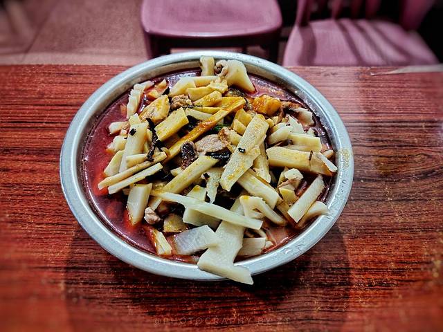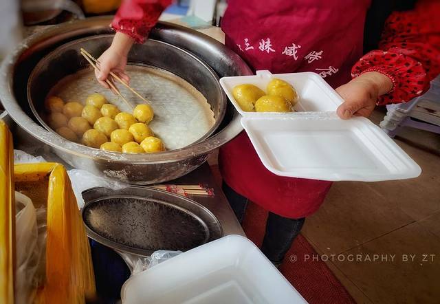 很容易吃闭门羹的一家当地特产店,第一次来这里就吃了闭门羹,傍晚六点多过来已经关门了。原来这家店一天只营业一个小时,下午五点开卖,卖完即止,一般傍晚六点左右收工。尽管时间短,但是食客排起长队来可以直到巷口,窄窄的小巷每天下午四五点瞬间变得热闹起来,也带动了周围店铺的生意。