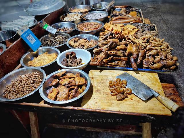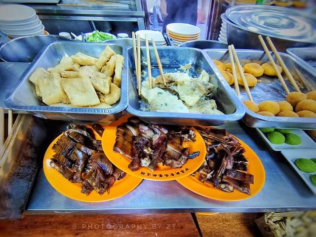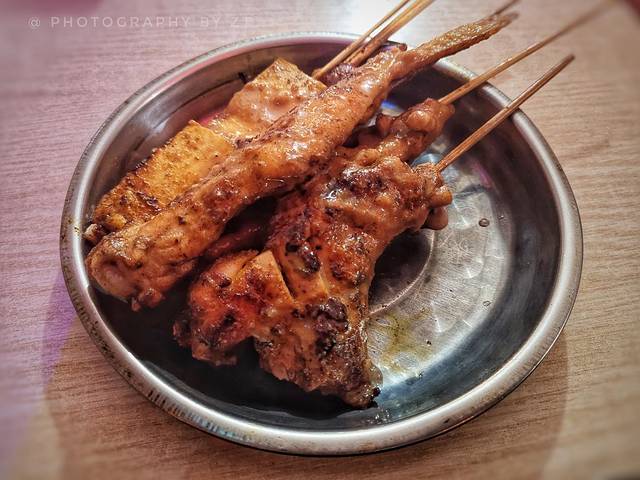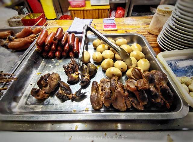 鸡腿鸡肉浓郁又独特的味道,包裹着的酱汁类似于沙茶酱,让人垂涎欲滴。其他的小菜如鱿鱼须,豆腐,鸡爪也让人难忘。