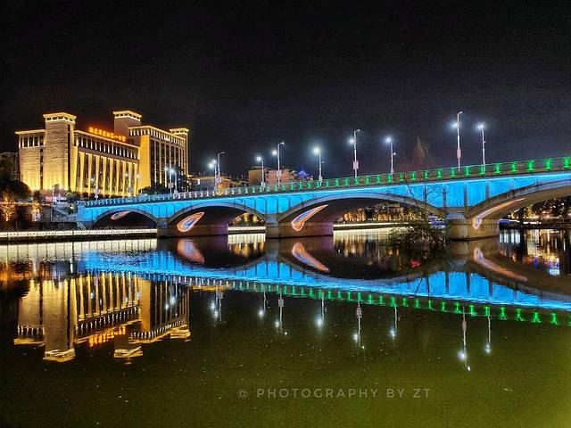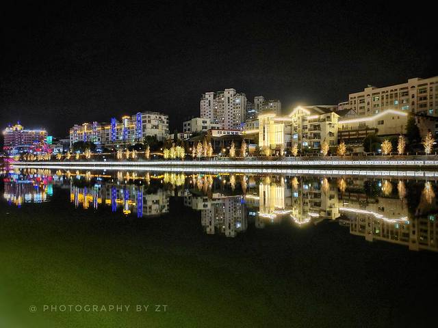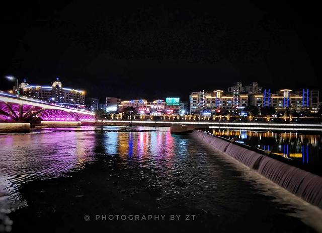 夜幕下的崇阳溪美轮美奂,溪水奔流不息。