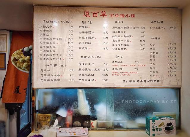 大名鼎鼎的厦百草占据着漳州甜品江湖的“一席之地”。店里的红豆/香芋芋圆冰是最受食客青睐的美食。