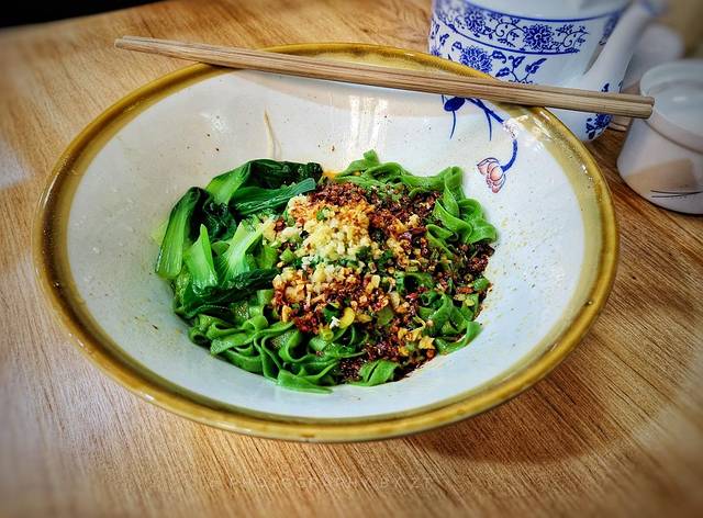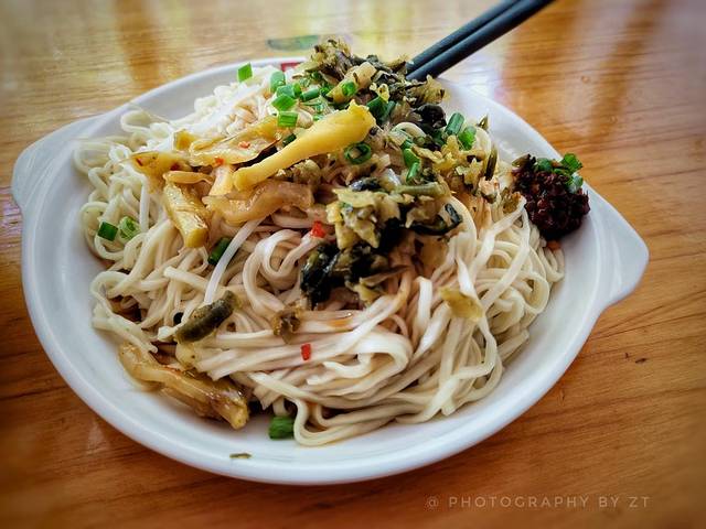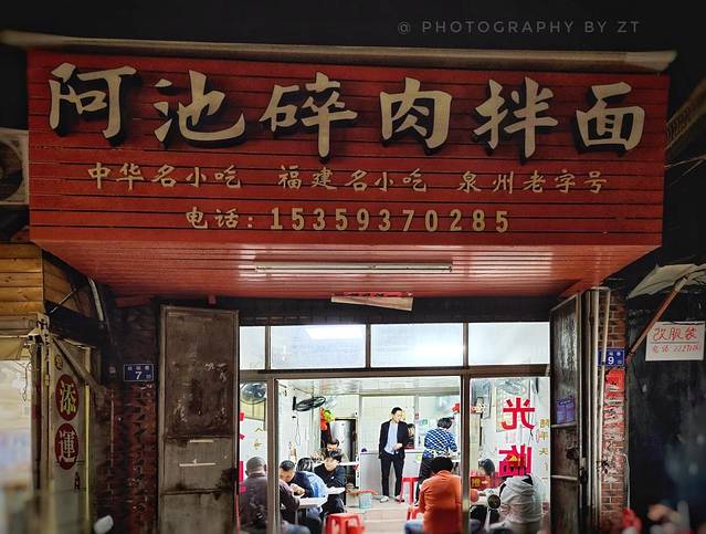 这家拌面店就位于庄阿姨芋头饼店的后一家,“碎肉拌面”也是泉州小吃的“一绝”。剁碎成丁的肉块,浇上浓郁的酱汁,与面一起快速搅拌,形成了独特的“碎肉拌面”。配菜用的小片切成条的包菜,包菜滤过水煮熟,鲜嫩可口。