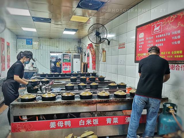 成群结队的食客在傍晚时分集结,拍照的,张望的,议论的,等待的都是那一煲煲出锅的姜母鸭。