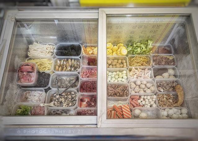 阿姨熟练的手法,迅速地将食客心仪的配料舀入碗里。