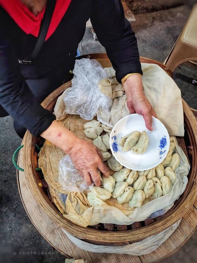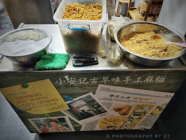 现场可以观摩手工麻糍的制作过程,经营店铺的是一对夫妇,麻利的手脚,一会就包好了几个麻糍。