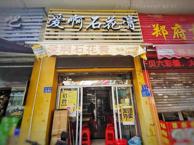 在夏天,“老泉州”喜欢来这里“续命”。可以和“秉正堂”媲美的一家甜品店,它叫“爱啊石花膏”,上了大众点评2019泉州必吃餐厅。第一次来吃了闭门羹,晚上九点多就卖完了,没想到这样的消暑甜品在冬季也如此火爆。第二次来是中午,店内刚开始忙活起来。各种配料新鲜十足,点了一碗石花膏加了一点芋头、芋圆,吃起来仍是冰冰爽爽的感觉。搭配着附近的鸡腿怣烧烤一起吃更赞了。