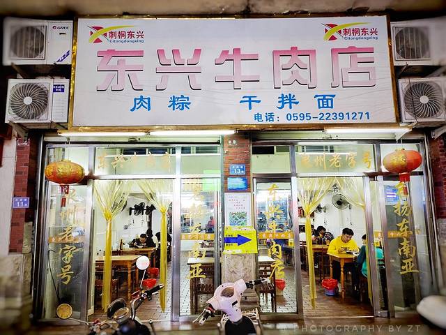 泉州传统的牛肉店,经营牛肉羹、干拌面、肉粽等。这家的牛肉羹,牛肉很大片,相比起“群众牛肉小点”,东兴牛肉店的牛肉羹,汤水更清亮,大片的纹理清晰的牛肉吃起来有嚼劲,韧而不软,姜丝和蒜叶解腻。一碗下肚,心满意足。