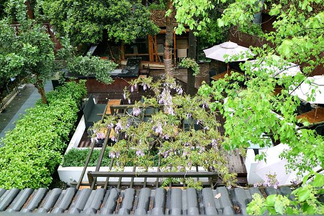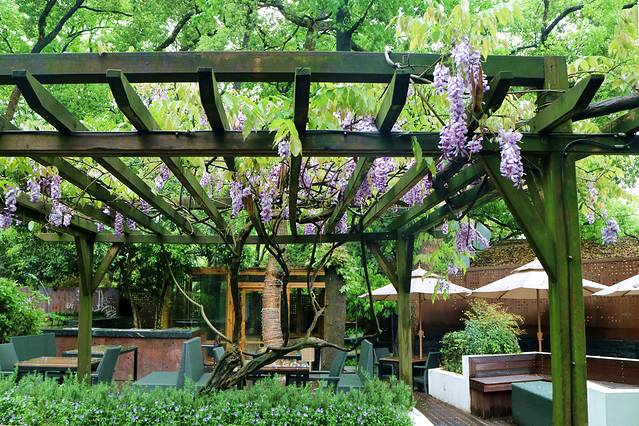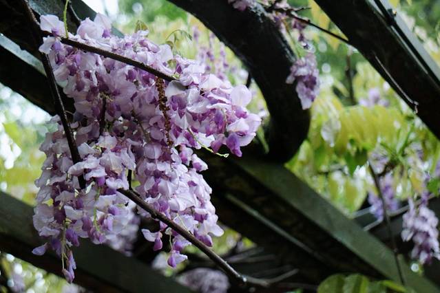 庭院里有一树紫藤,花开正盛。我们下午到达民宿,正赶上下雨。索性放弃出门游玩,泡一杯茶,临窗而坐,听着雨打梧桐,看着满树紫藤,也很闲适惬意。