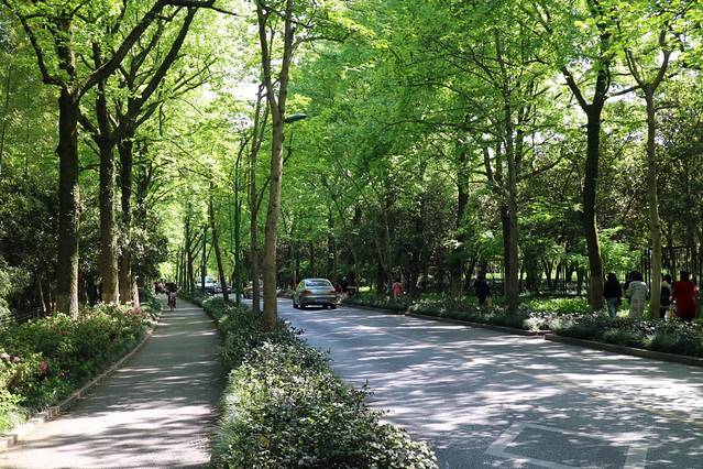 一早出门,雨后天空澄净,沿着满觉陇路上坡而行,街道两旁尽是桂花树,虽非花开时节,也能遥想秋天遍地金黄、十里飘香的盛景。