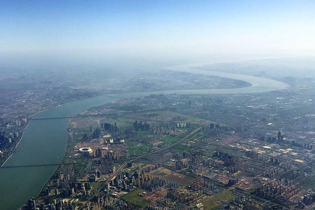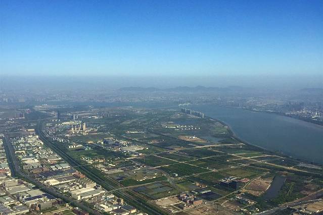 回程的飞机上眺望【钱塘江】,很是壮阔。