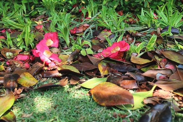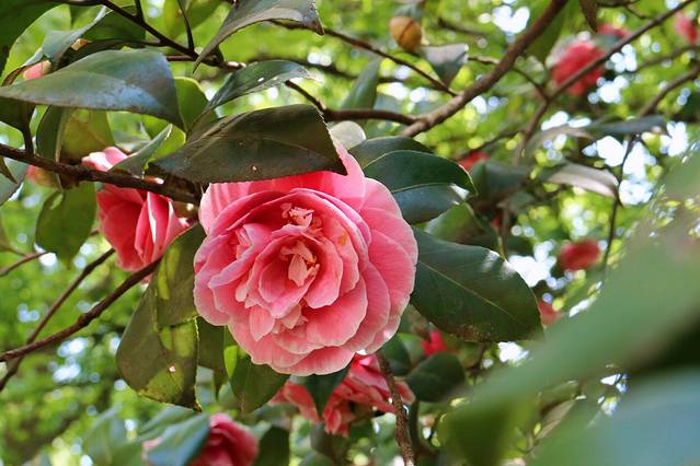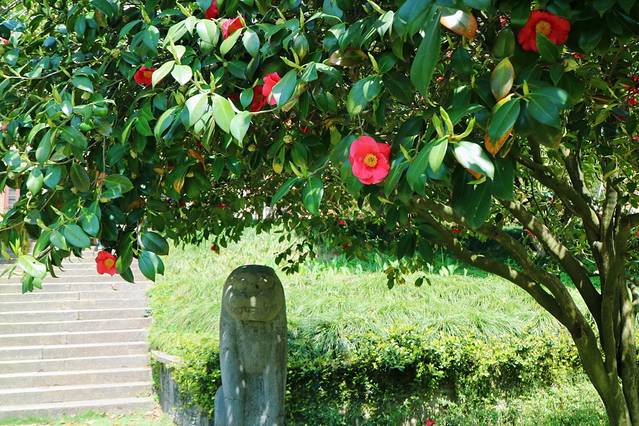 主楼前茶花开的正盛,舍不得挪开脚步。