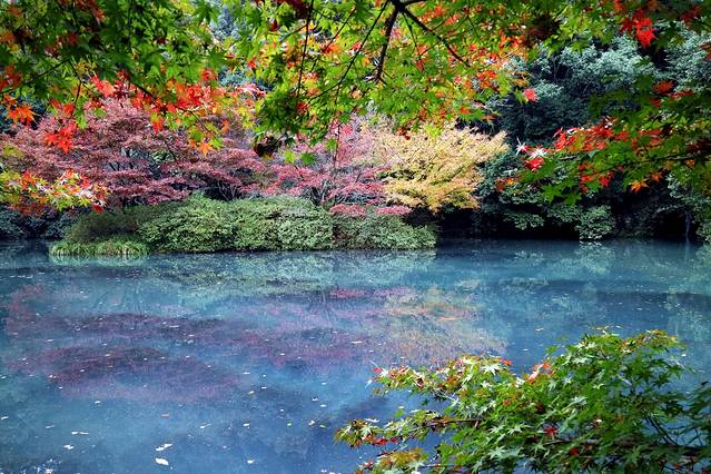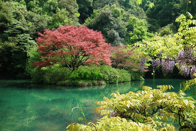 2.景色层次最丰富,春有绵延至天边的绿色茶田,秋有如火焰晚霞的酡红枫林,一路尽览山林、茶田、竹海、古寺、溪泉、碧水。