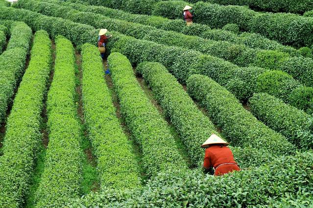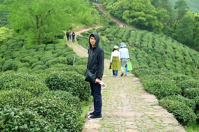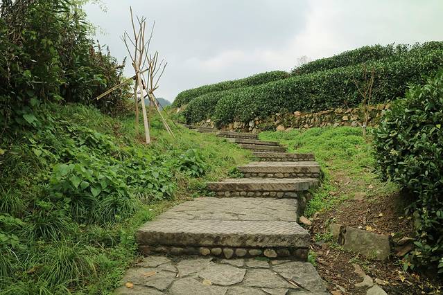 我们一路拾级而上。越往上,视野越开阔,四周环视俯瞰,漫山遍野都是茶树,一片绿意绵延到天边。