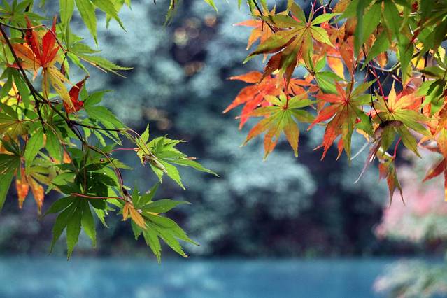 【九溪烟树】,西湖新十景之一,无论春秋,都五彩斑斓。随便捡一处僻静角落,或坐,或立,耳中满是活水清音。在九溪,经常会看到拍婚纱照的新人,还会看到一些穿着汉服的姑娘。