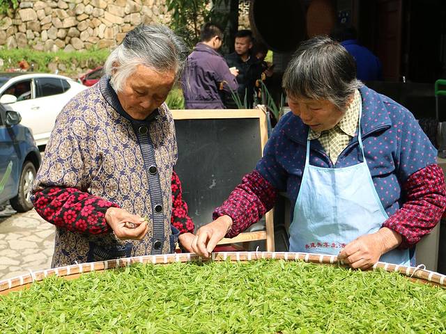 村里的老人们边聊天边晒茶,长板凳上翘着脚随意一坐,偶尔招呼下路过的游客,就喜欢股粗放原始的乡土味儿。
