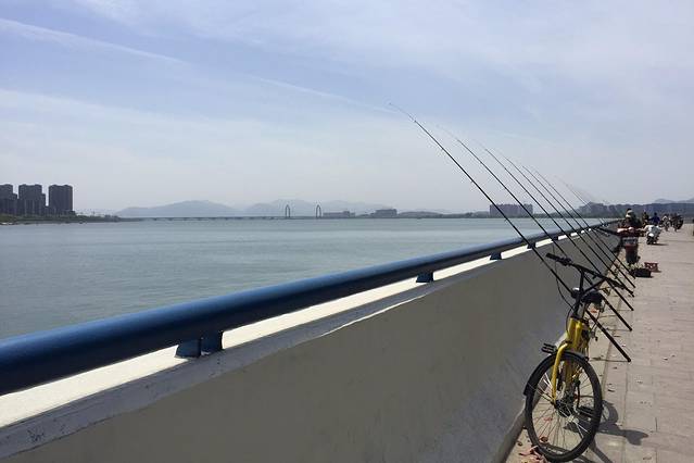 钱塘江边钓鱼的人很多,杭州人民生活真是惬意。