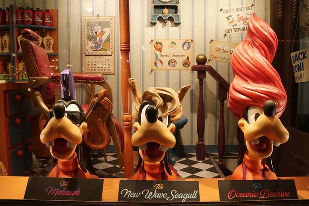 4⃣圣诞限定橱窗🎠,纪念品商店的橱窗上都更换为圣诞装饰的迪士尼人物,随着冰雪奇缘的大热,园区布置了“冰雪奇缘”圣诞冰雕。