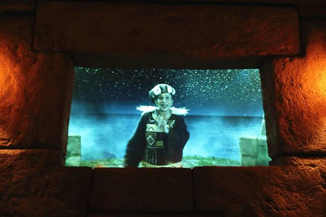 进场之前屏幕会播放一段女巫神神叨叨的讲解,接下来就是一场魔法般的环球之旅,4D特效很好。但我们在方特玩过类似的,也就没觉得特别惊艳。