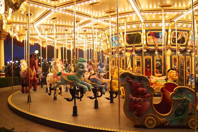 【奇想花园】位于乐园中心,涵盖了幻想曲旋转木马、小飞象等受欢迎的项目。