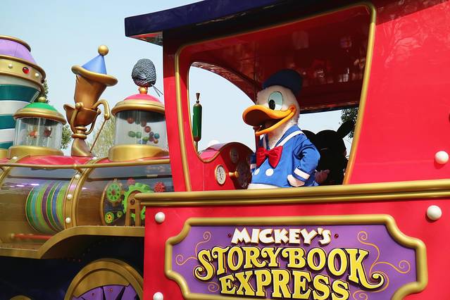 第一辆花车是【小飞象】,花车的驾驶员是灵魂人物——米奇和唐老鸭。