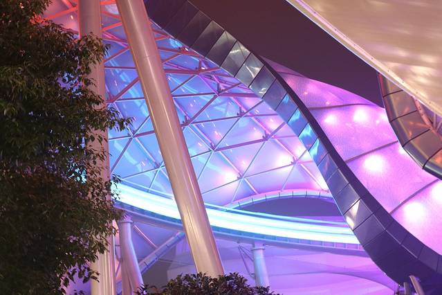 明日世界夜景很漂亮,灯光炫酷,更具科技感。晚上非热门项目的人少了些,玩了【太空幸会史迪奇】和【巴斯光年星际营救】,biubiubiu~~~