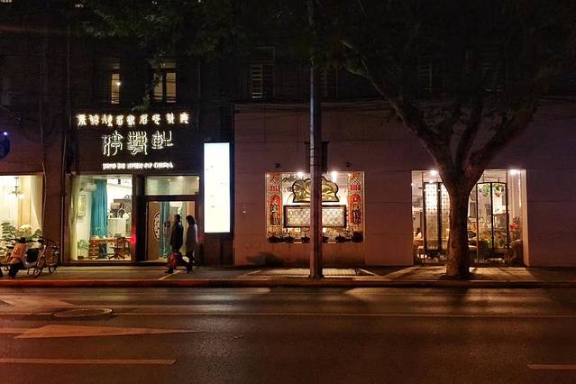从国泰电影院开步沿着茂名南路往南走,街景则完全换了一个样貌,如今已成为旗袍与洋服定制一条街。每家店铺都设有橱窗出样,当家名师现场测量尺寸,顾客自选面料后做出样品。看看那些挺括的样子,精良的阵势,可以充分感受上海人对着装的讲究。