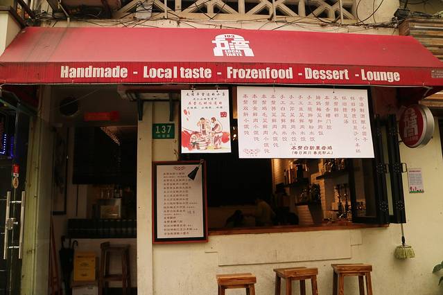 午饭找到了一家神仙小馆,店名叫【103本帮烧】,地址在兴安路137号,店面不大,基本都要拼桌,只有一个奶奶在打理。他家主卖小馄饨和醉虾,鲜肉馄饨和鸡毛菜馄饨都超级赞,老上海的味道。