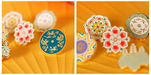 【纪念徽章】陕历博不定期根据馆藏和特展,设计不同主题的徽章系列,兼具收藏价值和装饰性,非常精美。 比如《宝相花》 《唐代铜镜》《青铜器》系列,强推刚刚结束特展的《醍醐寺》系列,五七桐、樱花和白色金刚杵已经绝版,网上价格炒很高了。