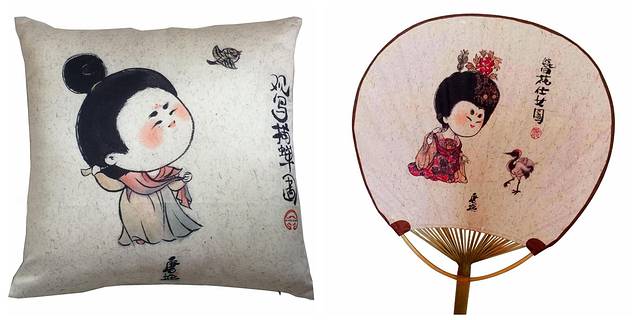 【“唐妞”抱枕套和竹扇】唐妞面如满月,体态丰盈,很有喜感。抱枕套是贡绸的,材质很好,设计原型《簪花仕女图》;竹扇很古风,图案取材《观鸟捕蝉图》,冲这两幅国宝就值得入手了吧。另外,唐妞帆布包和手办也不错。