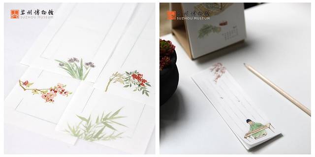【花笺】花笺跟彩墨一样,都是苏博的主打产品。 纸质很好,清新素雅,图案很多,适合毛笔钢笔的都有,推荐喜欢练字的朋友。