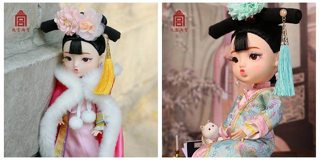 【俏格格娃娃】刚推出就因知识产权问题下架,但乌发杏眼、宽额小嘴的清宫娃娃还是很值得期待,定价略高。第一眼看到这款娃娃,直觉应该做成小号,采用Molly盲盒的营销模式,一定大卖。