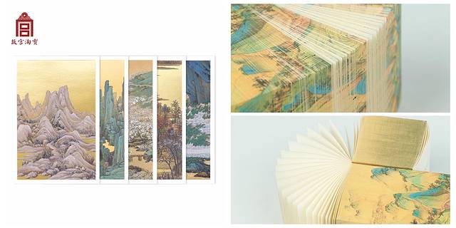 【2017青绿山水特展周边】推荐《十万图》烫金明信片和便签纸砖,精致貌美,邮票镇尺套装特别适合送人,设计取材王希孟《千里江山图》,感觉早晚会停产的。