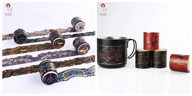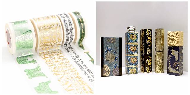 【故宫胶带】博物馆胶带界的扛把子,经常上新,深底烫金的适合打造限量版彩妆(右图是笔者自己DIY的),白底古风的适合做手账。每每看到绝版停产的,只能叹息,情深缘浅,此生不复相见。