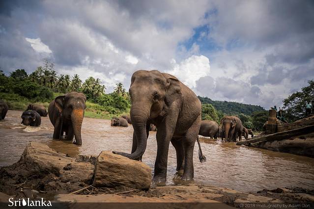 十点钟,大象准时来洗澡,Rrandika带我们找到一个绝佳的观赏点,河边的一家餐厅,午餐就在这里解决,一边吃着自助一边看着大象洗澡,没有任何征兆,外面突然下起瓢泼大雨,跟歌里唱的一样(蓝天白云,晴空万里突然暴风雨)瞬间打湿了我们的餐桌,可是心情却大好,因为这才是热带应有的样子,这才是斯里兰卡~