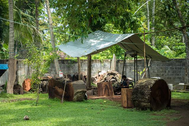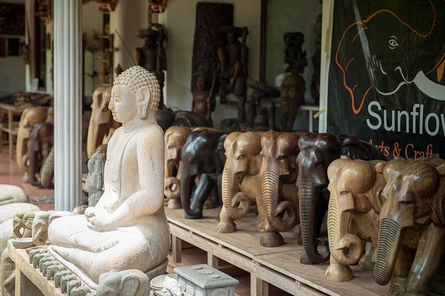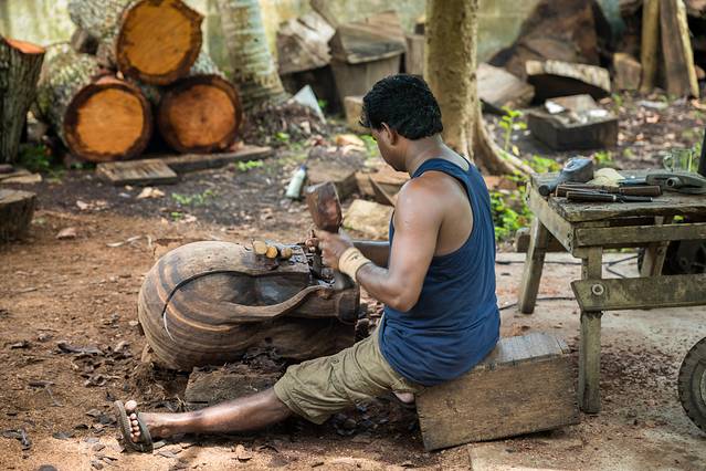 吃过早餐,想去附近的镇上转一转,跟tutu车司机说带我们去买木制品,司机很热心说带我们去工厂买很便宜的,离的很近,往返200卢比,从酒店出来穿过火车道不远处就有一个小村庄,司机告诉我们这就是他的家,他的村庄。他带我们来到一个工厂,更像是仓库,里面木雕制品非常多,佛像、面具、大象等等。只是工艺上有些粗糙,价格也不算便宜,我们转了一圈,觉得油漆味道好大,就赶快出来了。tutu司机又带我们去了另一家,是深入村庄的一家商店,也有工匠正在雕刻,他家的制作工艺果然比刚才那家精致的多,但价格也高了不少~