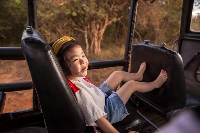 早上五点起床,芷萱出乎意料的乖,喝了两遍奶,就乖乖的起床了(从小养成的习惯,早上起床要先喝奶,也知道空腹喝奶不好,但就是调整不过来),五点半准时出发亚拉国家公园,天刚蒙蒙亮,太阳也在不远处的地平线升起,已经不记得多久没有看过日出了,每天过着两点一线的生活,不禁感叹时光飞逝~
