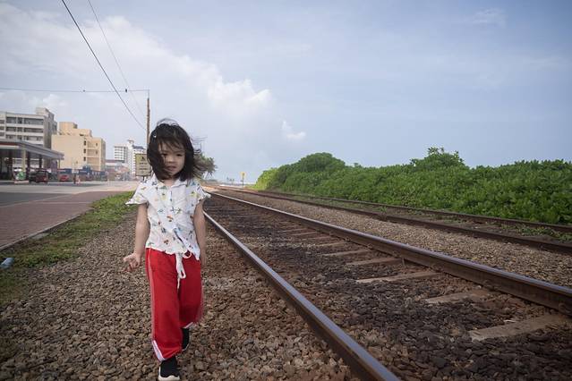 第八天也到了告别的时刻,酒店楼下的海边小火车轨道,也是她爹此行用相机拍的最后一张照片~