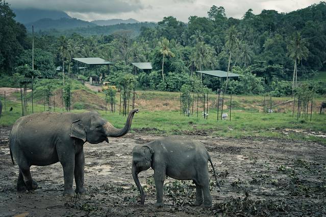 走出机场,天刚蒙蒙亮并下着小雨。因为是雨季,潮湿闷热扑面而来,但丝毫不影响我们的兴致。马上动身前往第一站大象孤儿院,这也是芷萱最期待的地方。一路上都是山道,雨水呼啸而至,本来做好了穿着雨衣看大象的准备,可是当我们停好车雨竟然停了,我想这是兰卡对我们的问候吧~