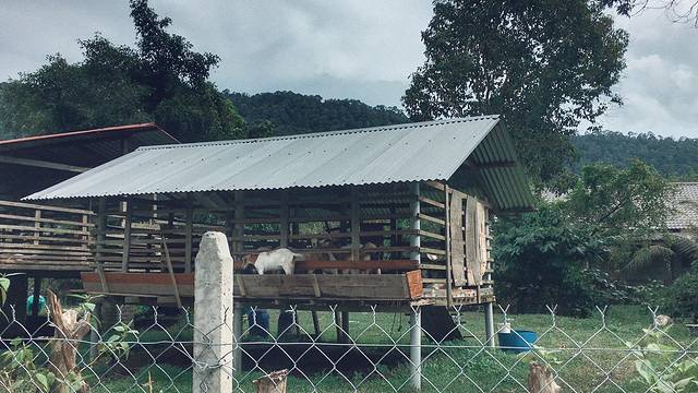 老规矩看到地图上最近的景点就去,此时我们穿过乡间小巷,前方的路怎么看也不是车能过得去,一路在怀疑导航指的路。但是沿途发现不少可爱的事情,羊圈架空高高的